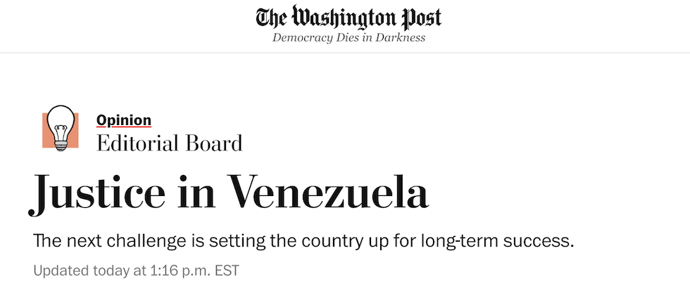 Anche il Washington Post ha pubblicato un suo editoriale sull’intervento in Venezuela, e al contrario di quello del New York Times è molto favorevole all’operazione dell’amministrazione Trump.