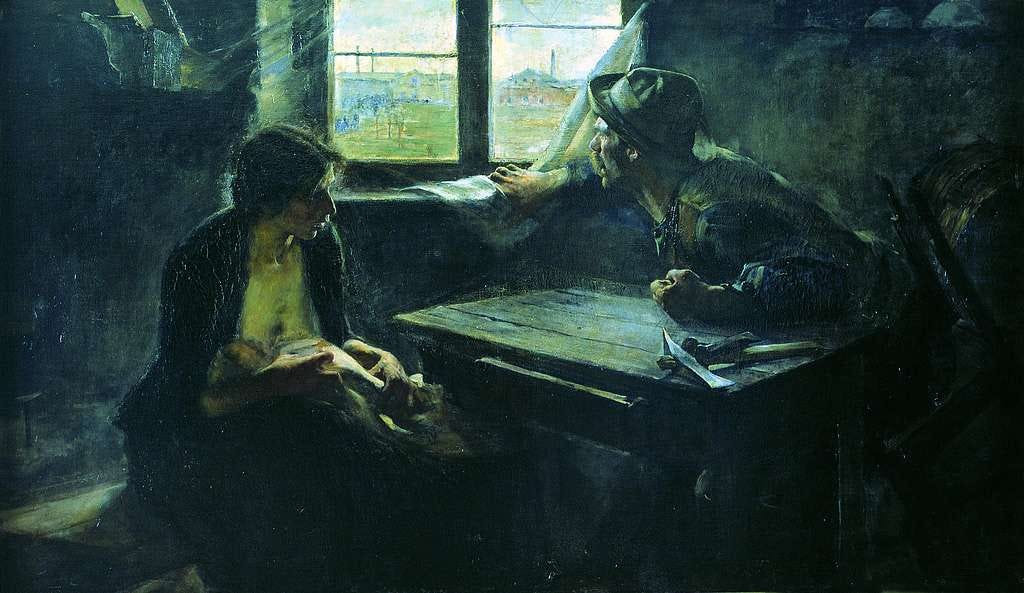 «Senza pane», dipinto da Ernesto de la Cárcova nel 1894. Wikimedia Commons. Licenza: CC BY-SA 4.0.