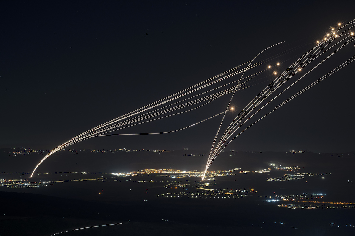 Un attacco iraniano intercettato da Iron Dome sopra Tel Aviv, giugno 2025 (AP Photo/Leo Correa)