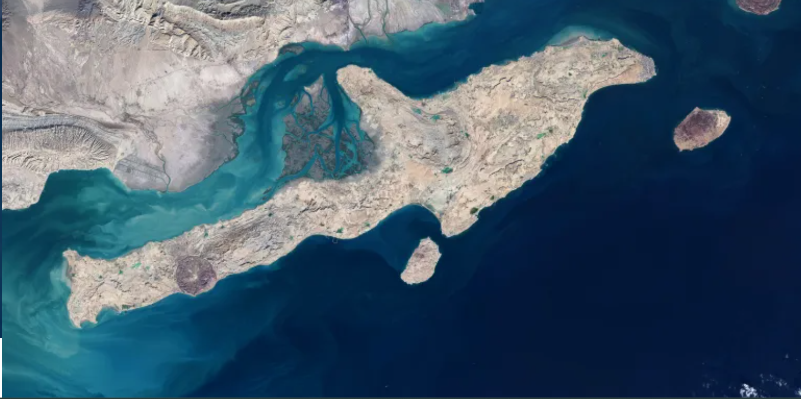1- Posizione ed estensione: Qeshm si trova sul lato iraniano dello Stretto di Hormuz, separata dalla terraferma iraniana da uno stretto passaggio noto come Stretto di Clarence. È la più grande isola iraniana, con una superficie di circa 1295-1500 km², una lunghezza di 130-135 km e una larghezza compresa tra 11 e 40 km. Un rapporto della NASA ha descrive la superficie dell’isola come rocciosa e arida, con un numero limitato di aree coltivate, mentre un rapporto sulle comunità locali indica che il clima è caldo e umido e l’acqua è scarsa.