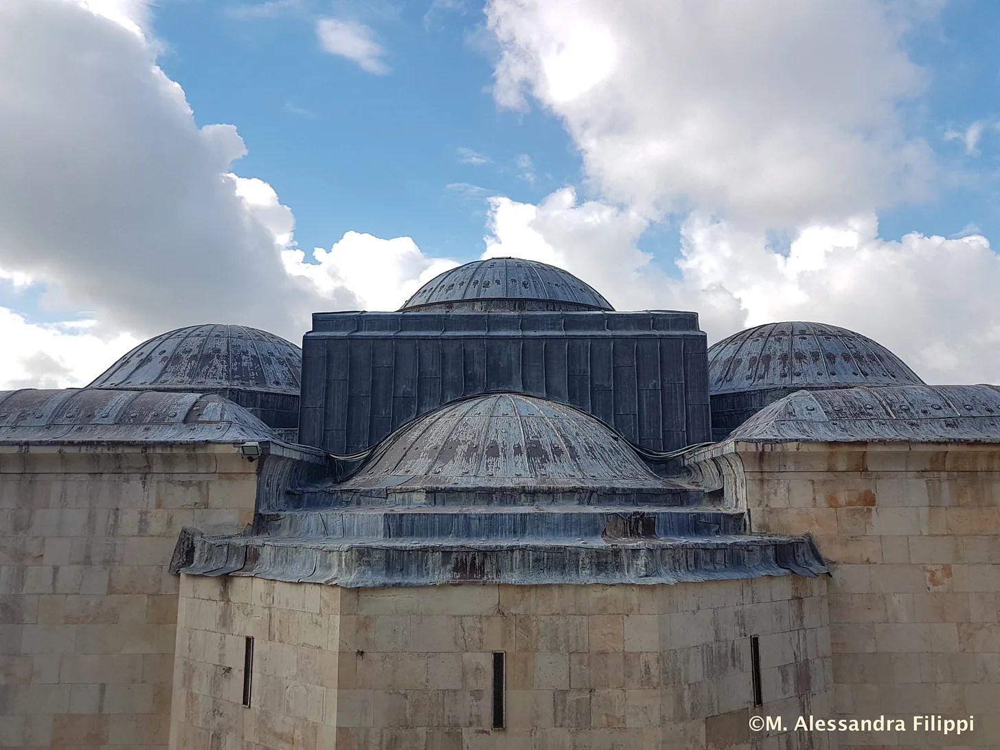 Gerusalemme. Veduta delle cupole della chiesa di tutte le Nazioni dal Monte degli Ulivi, costruita in quello che la tradizione riconosce come il Getsemani. Il nome della chiesa ricorda il contributo di numerosi paesi alla sua costruzione, avvenuta tra il 1919 e il 1924 su progetto dell’architetto Antonio Barluzzi. A dirigere il cantiere c’era un mio antenato, l’ingegnere Cesare Filippi, che ha realizzato tutte le chiese progettate dal Barluzzi in Terra Santa. La chiesa è conosciuta anche come chiesa dell’agonia in riferimento alla notte che Gesù vi trascorse alla vigilia del suo arresto. La foto l’ho scattata nel dicembre 2018.