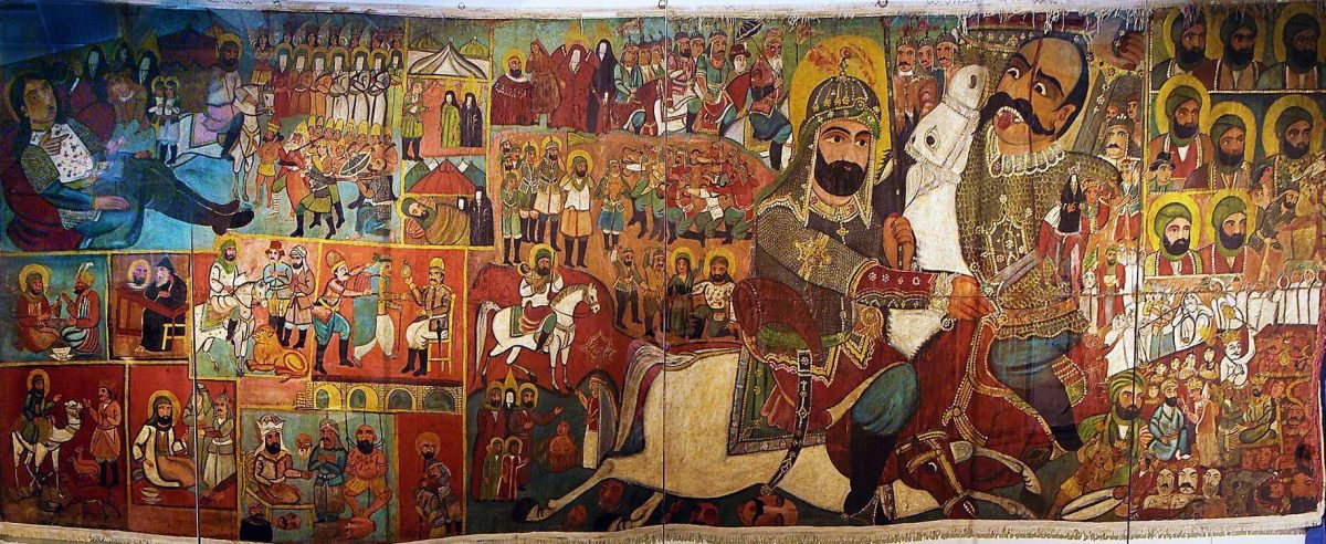 Realizzazione artistica iraniana del XIX secolo, raffigurante le vite dei 12 Imam. Foto di Bari’ bin Farangi. Licenza: CC BY-SA 4.0.