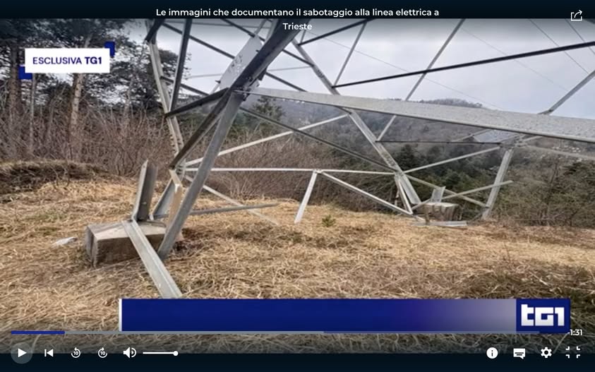 Il sabotaggio è avvenuto in un tratto della linea elettrica ad alta tensione gestita da Terna nei pressi di Terzo, frazione di Tolmezzo, provincia di Udine, linea che alimenta la stazione di pompaggio di Paluzza, 12 km più a nord. Secondo il comunicato del gestore della Rete elettrica nazionale, il traliccio n° 416 è stato «danneggiato ad opera di ignoti», e Terna ne ha informato le autorità di polizia. TAL, il gruppo europeo che gestisce l’oleodotto Transalpino, in una sua nota smentisce invece il sabotaggio e definisce «non veritiere» le notizie riportate dalla stampa tedesca e riprese dai media, adducendo che «nel mese di marzo l’oleodotto è stato interessato da un rallentamento tecnico delle attività dovuto a molteplici occorrenze, proprie e di terzi». Tuttavia le immagini diffuse dal TG1 sembrano incontrovertibili, e mostrano i tagli alla fiamma ossidrica compiuti alla base perché il traliccio si inclinasse sui cavi. Un lavoro da professionisti.