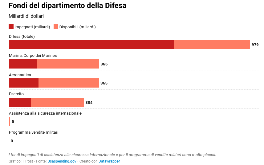 Questi accordi, così come i nuovi ordini per rimpinguare gli arsenali, però sono fermi perché il dipartimento della Difesa sta capendo come finanziarli e sta aspettando che il Congresso (il parlamento statunitense) gli approvi fondi extra. L’amministrazione Trump punta a chiederne ancora di più come budget per la Difesa dell’anno prossimo: 1.500 miliardi di dollari (1.300 miliardi di euro).
