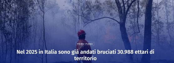 Dal blog https://www.lindipendente.online 30 Luglio 2025 Nei primi sette mesi del 2025 sono andati in fumo 30.988 ettari di territorio … Altro