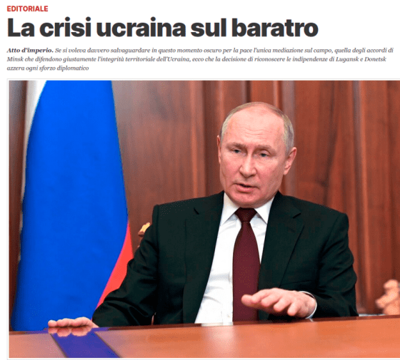 Di – Tommaso Di Francesco, 22.02.2022 Atto d’imperio Se si voleva davvero salvaguardare in questo momento oscuro per la pace … Altro